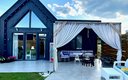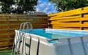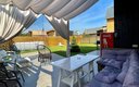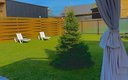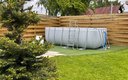 Во дворе — веранда с мангалом, большой бассейн, мягкая зона отдыха в тени. Летом там всегда комфортно, солнце не печёт и ветра почти нет. Рядом газон, а перед домом хорошая детская площадка.