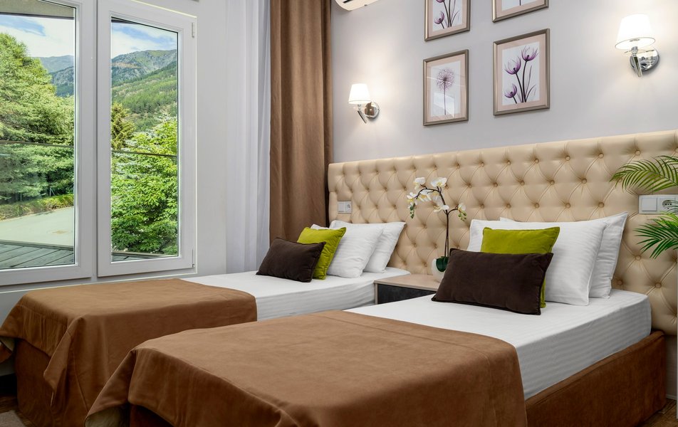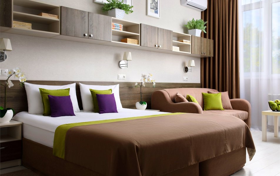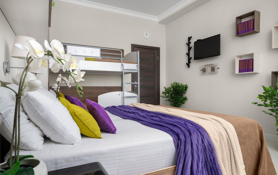 В номерах доступна сеть wi-fi, а перед корпусом организована охраняемая автостоянка. Для детей в отеле предусмотрена игровая комната.