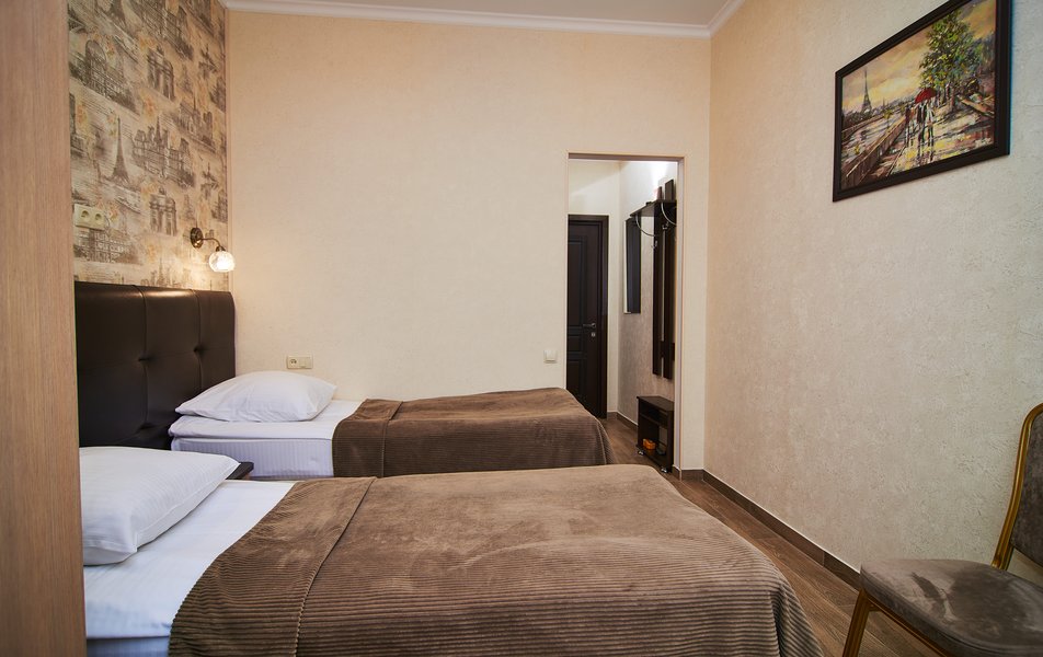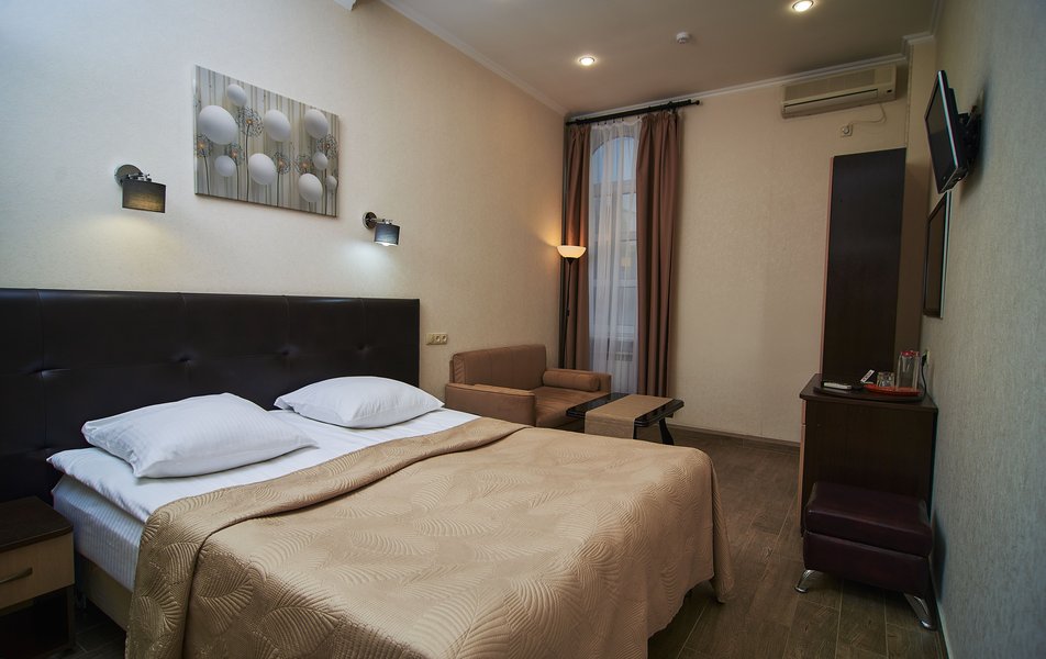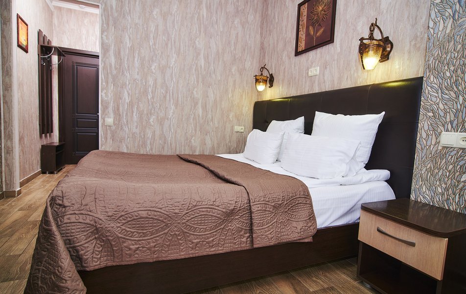 Гостям предлагаются несколько категорий номеров, оборудованных всем необходимым для длительного проживания. Комнаты располагаются в 3-этажном здании, выполненном в дворцовом стиле. Номера гостиницы имеют классический интерьер в теплых оттенках. Они оснащены необходимой мебелью, телевизором и собственной ванной комнатой с установленной ванной или душем. Работает высокоскоростной интернет.