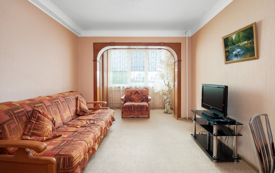Просторные двухкомнатные апартаменты площадью 50 квадратных метров рассчитаны на комфортное размещение пяти человек. Здесь предусмотрены раскладной диван и удобное кресло в гостиной. В комнатах есть телевизор, а на всей территории работает беспроводной Wi-Fi. Кухня полностью оборудована для самостоятельного приготовления пищи: электрическая плита с духовым шкафом, холодильник, микроволновая печь, электрочайник и полный набор посуды на шесть персон. Для бытовых нужд предусмотрены стиральная машина, утюг с гладильной доской и фен.