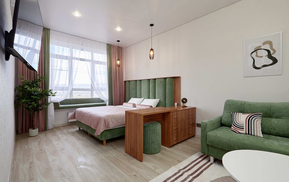 Квартира с шикарным видом на Боргустанский хребет. Удобство, уют и комфорт продуман до каждой мелочи.Светлая, уютная 1-комнатная квартира в самом центре Кисловодска, в парковой зоне, рядом с озером и Комсомольским парком. Двухспальная кровать. Комфортный раскладной 2-местный диван. Плазменный телевизор в комнате. Скоростной Wi-fi. Холодильник, микроволновая печь, утюг, гладильная доска, косметические принадлежности, стиральная машина, посудомойка.