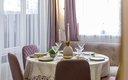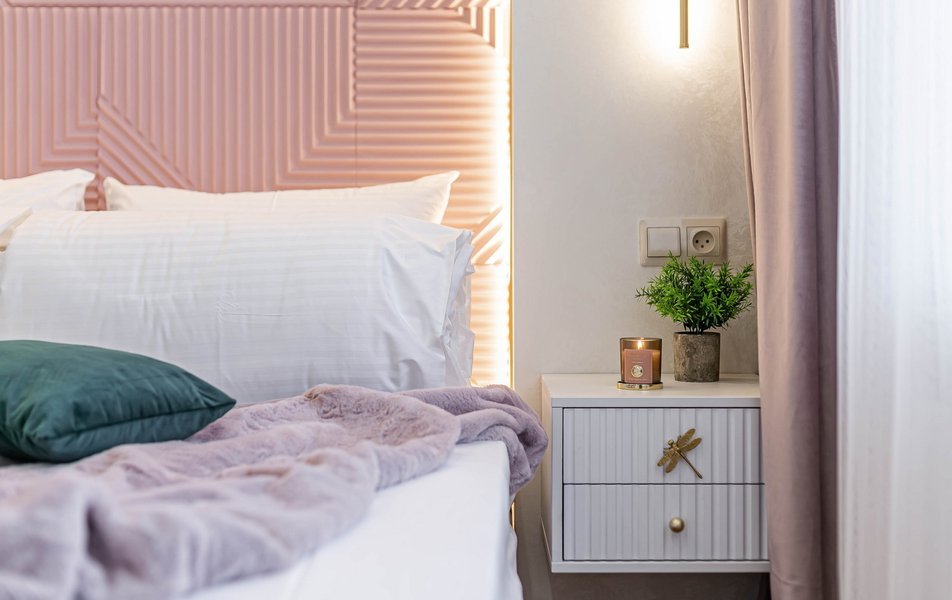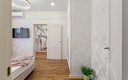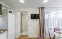 Внутреннее пространство апартаментов организовано для комфортного размещения до шести гостей и включает полноценную двуспальную кровать и два широких раскладных дивана. Для тех, кому необходимо совмещать отдых с делами, обустроено рабочее место, а система индивидуального отопления, кондиционер и плотные шторы блэкаут обеспечивают идеальный микроклимат в любое время года. Кухонная зона полностью укомплектована для приготовления домашних блюд: здесь есть газовая варочная панель, микроволновая печь, холодильник, электрочайник и турка для ценителей кофе. Ванная комната оснащена современной душевой кабиной, гигиеническим душем и феном, а в распоряжении гостей всегда находятся свежее постельное белье, комплекты полотенец, утюг и высокоскоростной Wi-Fi.