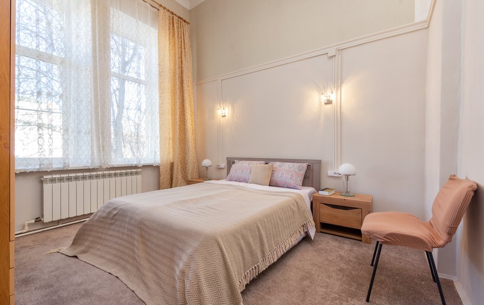Апартаменты на Урицкого 6 расположены в историческом центре Кисловодска, в старинном доме, признанном памятником архитектуры. Это место, где особая атмосфера старого города сочетается с удивительным удобством расположения: окна апартаментов выходят на территорию санатория «AZIMUT Здоровье Долина Нарзанов» с его аквапарком, бассейном и полным спектром лечебных процедур. Гостям открывается редкая возможность совмещать экономичное проживание в уютных апартаментах с оздоровлением в соседнем санатории, в нескольких шагах от дома. Вся необходимая инфраструктура также рядом: магазины, остановки общественного транспорта и другие объекты городской среды находятся в пешей доступности. Для автомобиля гостя предусмотрена крытая парковка в тихом внутреннем дворе.