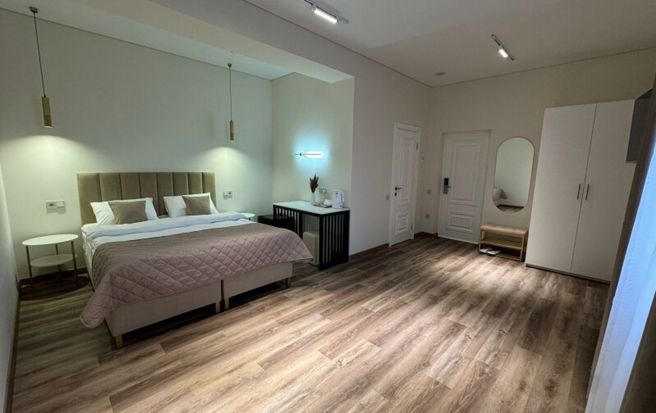 Трёхэтажный гостевой дом предлагает размещение в трёх категориях номеров: «Стандарт», «Делюкс» и просторный двухкомнатный «Делюкс». Все номера подходят как для семейного отдыха, так и для размещения одного или двух гостей.