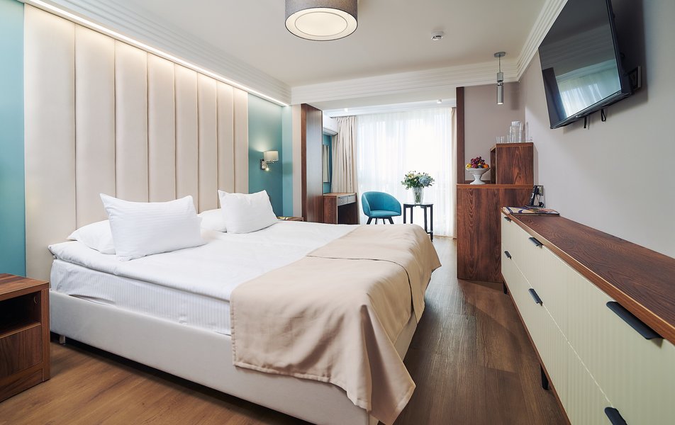В санатории 319 современных и комфортабельных номеров различных категорий от стандартов до апартаментов, расположенных в едином 11-этажном корпусе. Оснащение номеров соответствует европейскому уровню комфорта.