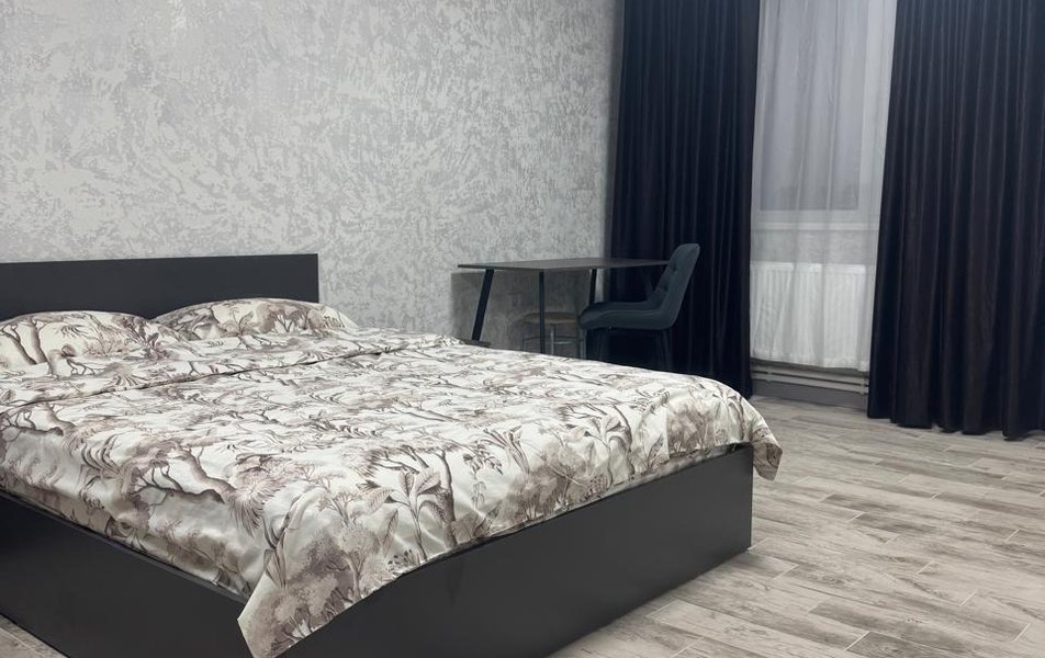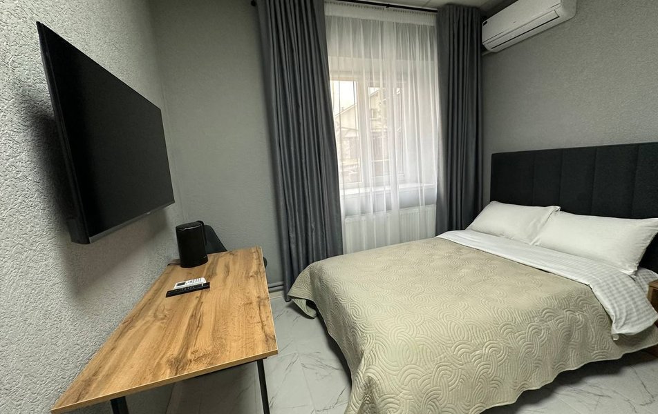 Внутреннее пространство рассчитано на комфортное размещение до четырёх гостей. Предусмотрены большая кровать и раскладной диван. В распоряжении гостей — чистое постельное бельё, полотенца, фен и средства гигиены. Кухня оснащена всем необходимым для приготовления еды, в гостиной работают телевизор и стабильный Wi-Fi. К приятным мелочам относятся чай и кофе для приятного начала дня, а также возможность бесконтактного заселения в любое время суток.