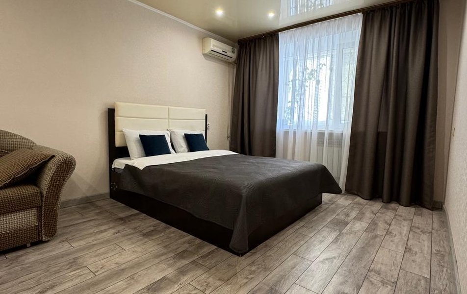 Просторные апартаменты расположены в районе с отлично развитой повседневной инфраструктурой. В шаговой доступности находятся продуктовые магазины, уютные рестораны и круглосуточная аптека. Транспортная доступность также продумана: до аэропорта — восемь минут езды, до железнодорожного вокзала — всего пять. Для гостей, путешествующих на личном автомобиле, предусмотрено место для парковки.