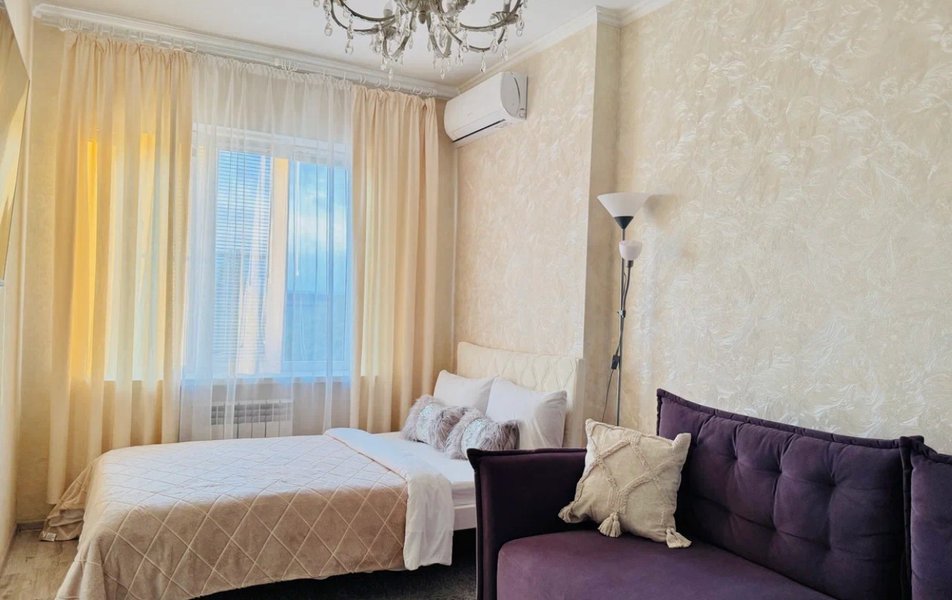 Гости могут остановиться в однокомнатных стильных апартаментах, рассчитанных на 2 человек. В них есть все необходимое для комфортного отдыха –– удобная кровать с ортопедическим матрацем, телевизором, диваном и креслом, отдельной ванной с душевой, кондиционером, оборудованной кухней с техникой и комплектом посуды.