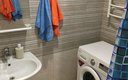 Внутреннее пространство площадью 35 квадратных метров организовано с вниманием к деталям и рассчитано на комфортное размещение до четырёх человек. Основное спальное место — двуспальная кровать, а дополнительным служит удобный диван. Гостиная зона оснащена телевизором, а в любой сезон поддерживать комфортную температуру помогает кондиционер. На кухне есть всё необходимое для самостоятельного приготовления пищи: газовая плита, холодильник, микроволновая печь, электрочайник, полный набор посуды и стол со стульями. Для бытовых нужд предусмотрены стиральная машина, утюг и гладильная доска.