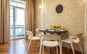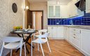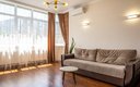 Внутреннее пространство сочетает стиль и функциональность. Зона сна оборудована удобной кроватью с мягкими качественными подушками и ортопедическим матрасом, обеспечивающими комфортный отдых. Просторная гостиная зона с мягким диваном позволяет расслабиться после насыщенного дня. Кухонный уголок полностью оснащен бытовой техникой и посудой для приготовления любых блюд. Ванная комната укомплектована всем необходимым, включая средства гигиены, свежие полотенца и фен. К приезду подготовлено чистое постельное белье, а в числе приятных мелочей — чай и кофе для спокойного утра. В распоряжении гостей бесплатный Wi-Fi, кабельное телевидение, а из окон открывается потрясающий вид на парк. Для тех, кому важны отчетные документы, они предоставляются по запросу.