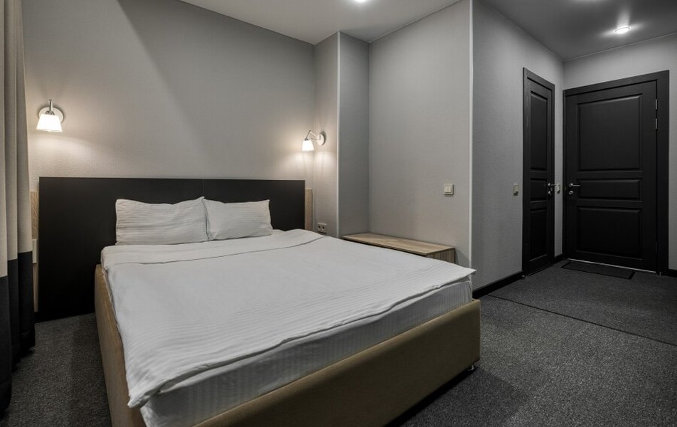 Интерьеры выдержаны в лаконичном минималистичном стиле: светлые тона, продуманная планировка и белоснежное постельное бельё создают атмосферу свежести и уюта. Каждый номер — это пространство с полной комплектацией мебели и вниманием к деталям.
