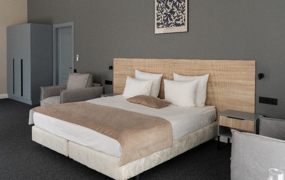 Отель занимает закрытую территорию, разместившуюся среди смешанного леса. Для размещения предлагаются комфортабельный гостиничный корпус и уютные отдельно стоящие барнхаусы. Гостей ожидают номера с классическими и функциональными интерьерами. Во всех номерах персональный санузел с душем, мини-холодильник, кондиционер и другая бытовая техника.
