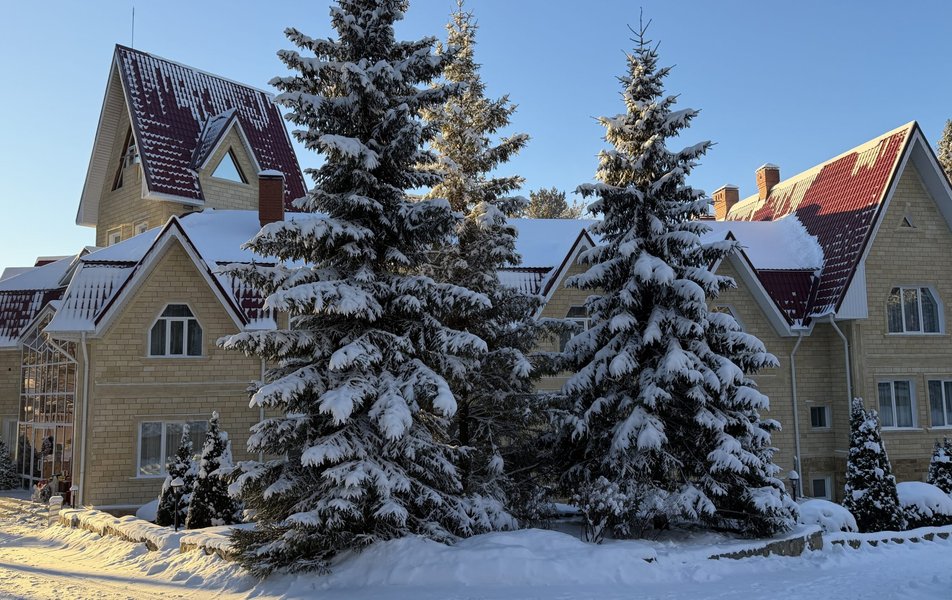 Для юных гостей в загородном отеле работает детская комната, на улице организована игровая площадка, а зимой для детей заливают ледяные горки.