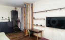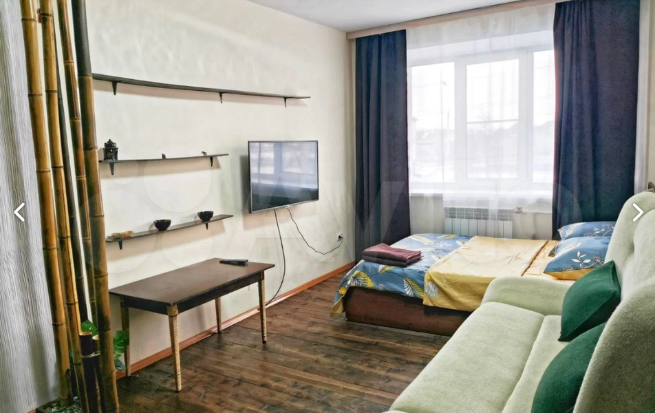 Внутри — уютная однокомнатная квартира с продуманной планировкой и всем необходимым для полноценного отдыха. Гостей ждут двуспальная кровать и диван-книжка. В гостиной установлен Smart-телевизор с доступом к беспроводному интернету — можно смотреть любимые фильмы и передачи в любое время. Кухня полностью готова к использованию: микроволновая печь, холодильник, электрочайник, столовая посуда и приборы. В ванной комнате — стиральная машина и фен. В жаркую погоду создаст прохладу кондиционер. Здесь всё продумано для того, чтобы чувствовать себя как дома.