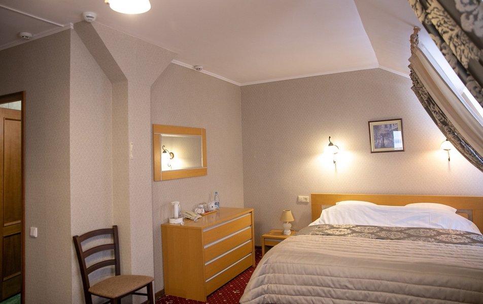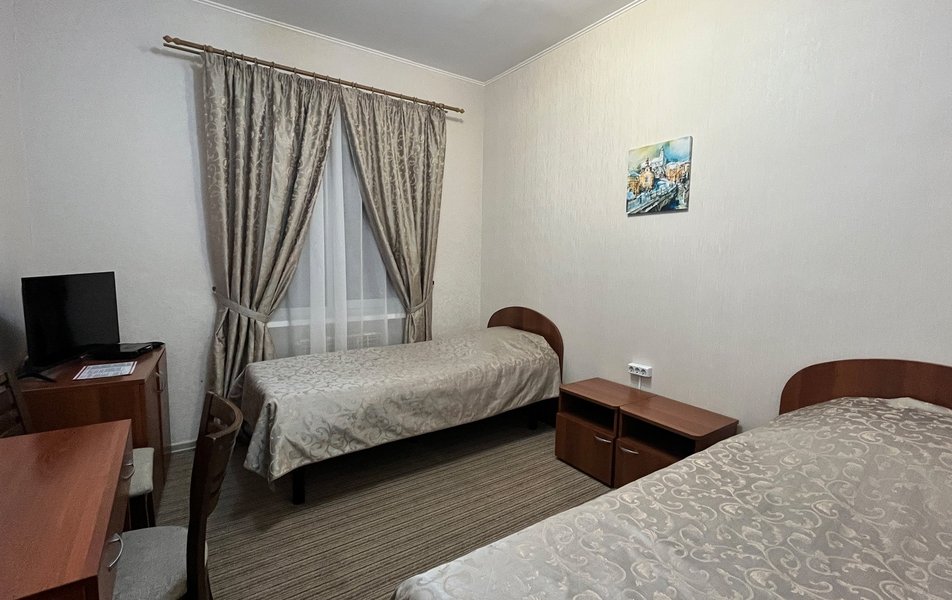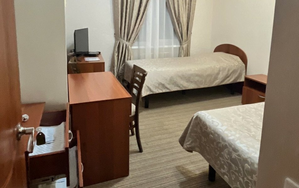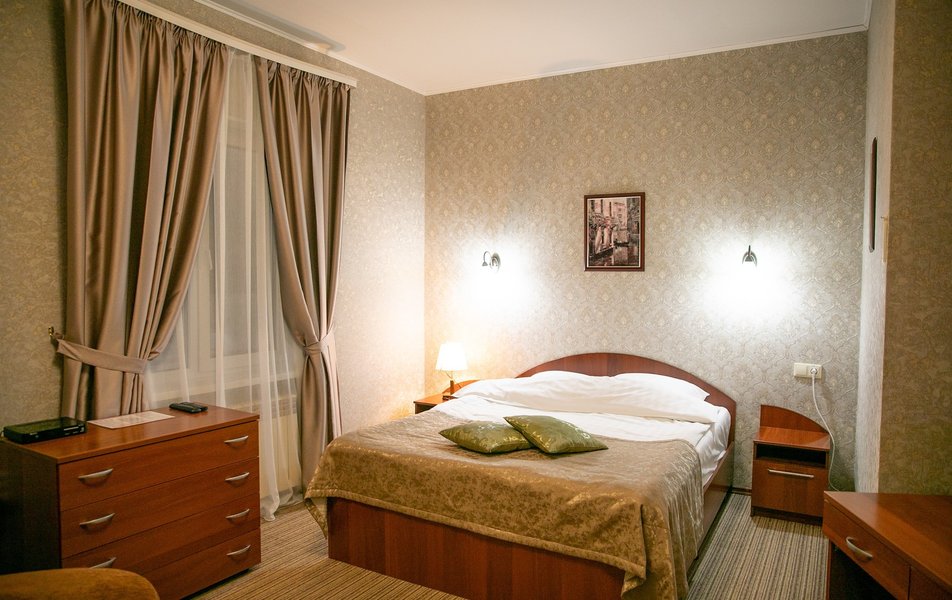 Двухэтажный корпус гостиницы разместился на одной из главных магистралей поселка – улицей Советской. Жилой фонд включает в себя 28 комфортабельных номеров, интерьер которых выдержан в приятной пастельной гамме. Все номера оснащены индивидуальным санузлом с душем, в комнатах есть плазменный телевизор, электрочайник, мини-холодильник.
