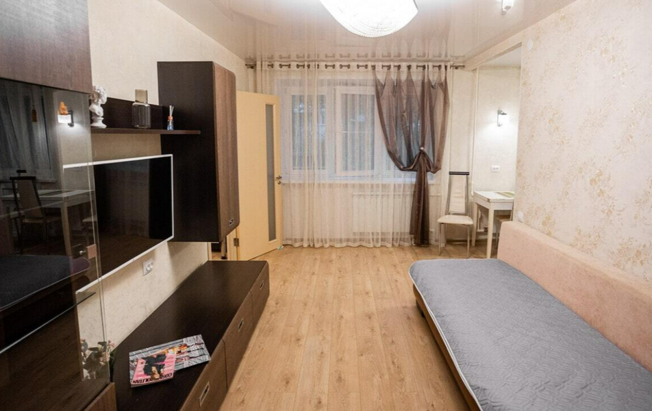 Апартаменты располагаются в 5-этажном здании. Интерьер комнат выполнен в светлых оттенках, в них установлена необходимая мебель для отдыха, есть места для хранения одежды, телевизор, Wi-Fi, стиральная машина. Санузел оборудован душевой кабиной. На кухне предусмотрена плита, микроволновая печь, электрический чайник, холодильник, а также набор посуды и столовых приборов. Личный транспорт можно оставить на парковке возле дома.