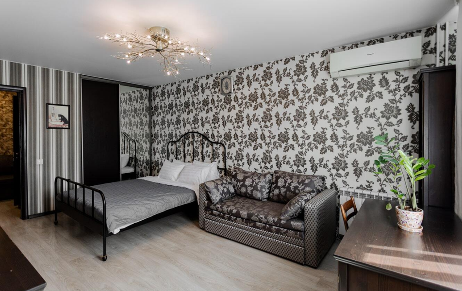 Апартаменты находятся в жилом десятиэтажном здании, расположенном на улице Демонстрации напротив небольшого сквера. К услугам гостей современная квартира с полноценной кухней и ванной комнатой. Апартаменты, рассчитанные на 5 гостей, оснащены всей необходимой мебелью и бытовой техникой: установлен кондиционер, есть стиральная машина, плазменный телевизор, электрочайник, холодильник, микроволновая печь, электрическая плита и фен. В квартире доступен беспроводной интернет, позволяющий всегда оставаться на связи, во дворе дома организована парковка.