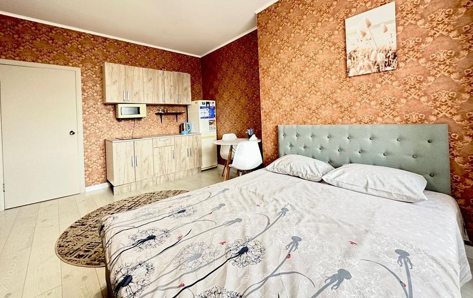 Апартаменты разместились в жилом 15-этажном доме по улице 50 лет ВЛКСМ. Рядом на территории оборудованы парковочные места для авто, детская площадка. В распоряжении постояльцев однокомнатная студия с двуспальной кроватью и диваном в качестве спальных мест. Кухонный уголок оснащен варочной панелью и микроволновой печью, есть холодильник, посуда. Санузел совмещен, установлена стиральная машина, приготовлены предметы гигиены, фен. Для большего комфорта гостей предусмотрен доступ к wi-fi и кабельное ТВ, имеются гладильные принадлежности. Желающие могут разместить с домашним питомцем при соблюдении правил проживания и ухода за животными.