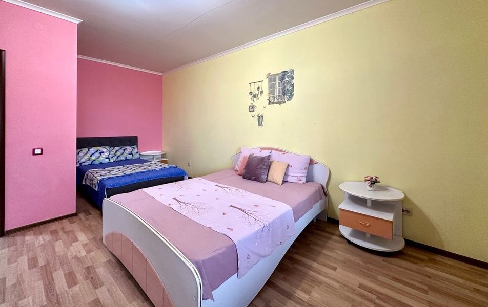 Апартаменты разместились по улице Мельничной в 9-этажном жилом доме с закрытым от посторонних двором. На придомовой территории оборудованы парковочные места, детская игровая площадка. В распоряжении гостей однокомнатные апартаменты на 7 этаже. В номере, вмещающем до 4 человек, имеется все необходимое для длительного или краткосрочного проживания. В спальне – двуспальная кровать и раскладной диван, телевизор, зеркальный шкаф для вещей. На кухне – обеденная зона с диванчиком и кухонный гарнитур. Установлена духовка, микроволновая печь, керамическая варочная панель, двухкамерный холодильник, стиральная машина. В санузле – большая душевая кабина, предметы гигиены и фен.
