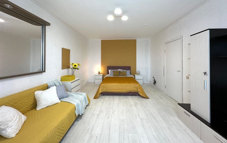 Апартаменты разместились в 17-этажном доме по улице Обдорской. В распоряжении гостей уютный однокомнатный номер с балконом, вмещающий до 6 человек. Номер выполнен в приятных оттенках с акцентом на детали и текстиль. В кухне-гостиной установлен диван, обеденная зона и кухонный гарнитур, укомплектованный всем необходимым – посудой, плитой, СВЧ, холодильником. В спальне – широкая двуспальная кровать, еще один диван, вместительный шкаф, смарт телевизор. Санузел совмещен с ванной, есть фен и средства гигиены. Для удобства гостей предусмотрен доступ к wi-fi, кабельное ТВ, есть утюг и стиральная машина.