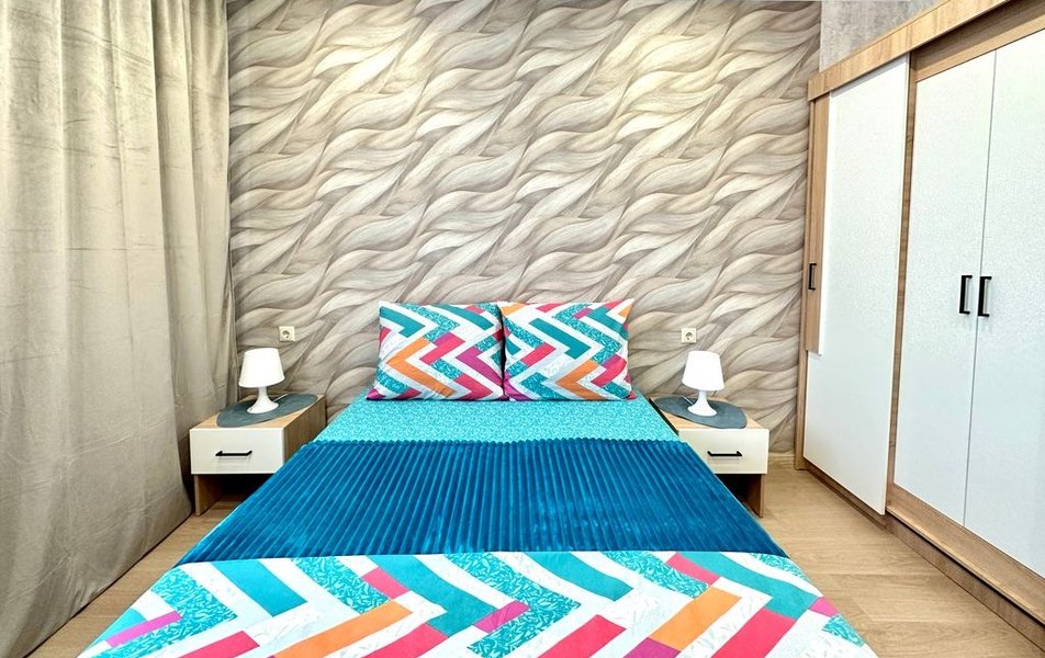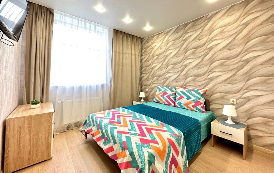 В двухкомнатных апартаментах, рассчитанных на размещение до 4 человек, есть все необходимое для длительного или краткосрочного проживания. В спальне – двуспальная кровать, телевизор, вместительный шкаф для вещей. На кухне-гостиной – раскладной диван, обеденная зона и кухонный гарнитур с базовым набором бытовой техники. Санузел совмещенный, с душем, есть фен и предметы гигиены, установлены стиральная машина. Для удобства гостей предусмотрен доступ к wi-fi, чтобы всегда оставаться на связи, и кабельное ТВ.