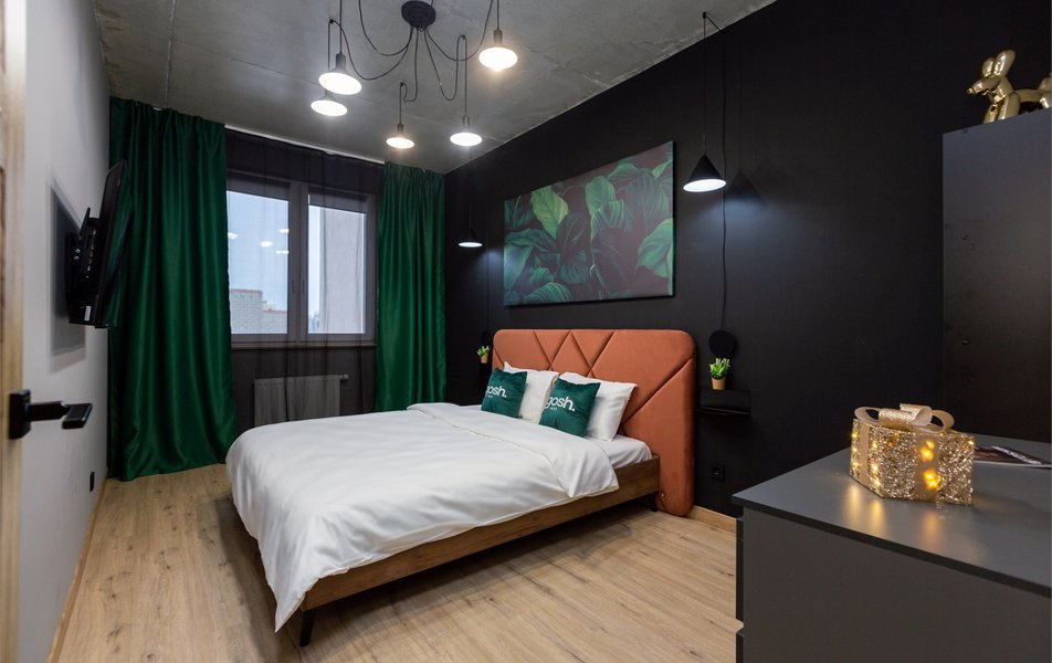 Апартаменты «Gosh» расположены возле Набережной города Тюмени с оригинальным и неповторимым интерьером в жилом комплексе «Салют». В апартаментах присутствуют все необходимые удобства для проживания. Апартаменты оборудованы быстрым Wi-Fi, всей необходимой мебелью и техникой, полноценной кухней, ванной, двуспальной кроватью и мягким диваном, который подходит для сна. Из окон открывается завораживающий вид на центр Тюмени.