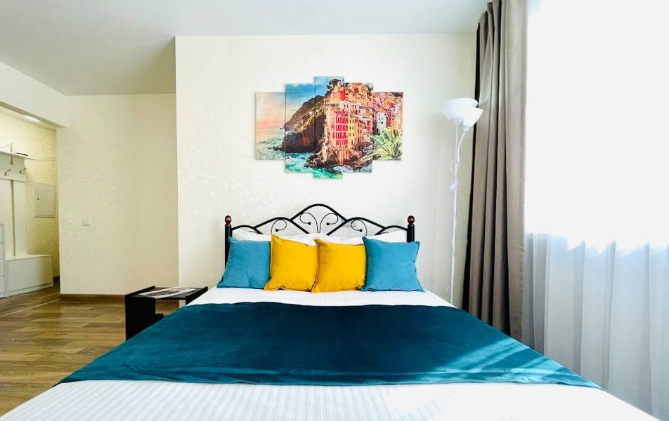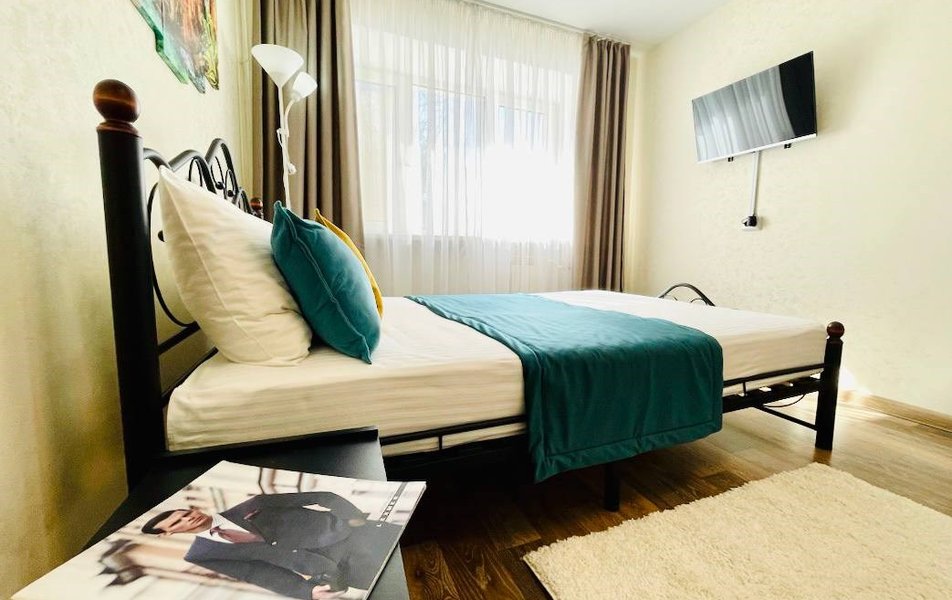 Светлые однокомнатные апартаменты размещены в 4-этажном доме с парковкой во дворе. В соседних зданиях работают магазины, аптеки и кафе. Апартаменты состоят из спальни и кухни, и полностью подготовлены для комфортного проживания гостей. В спальне - двуспальная кровать, кухня небольшая, но функциональная: оснащены пространство для приготовления еды и обеденная группа со столом и стульями, на подоконнике - уютная лаундж-зона. В совмещенном санузле установлены ванна и стиральная машина, приготовлены полотенца и туалетные средства. В свободном доступе беспроводной интернет wi-fi.