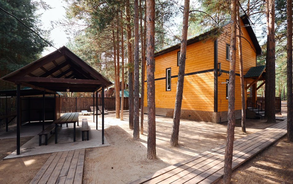 Возле каждого дома - своя зона барбекю с беседкой. Часть домой имеет свой выход к озеру, пирс. В некоторых - своя баня. На прилегающей территории дома доступна парковка, для каждого коттеджа предусмотрено свое количество парковочных мест.
