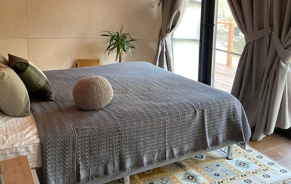 На территории глэмпинга располагаются домики a-frame с панорамными окнами и купольные дома-сферы. Дома отапливаются, а потому предназначены для круглогодичного размещения. В каждом домике предусмотрен санузел с душем, феном и косметическими принадлежностями, есть кухонная зона с плитой и прочей бытовой техникой, оборудована обеденное пространство, спальные места на раскладывающихся диванах или двуспальных кроватях и спальными местами на втором ярусе. Среди удобств – кондиционер и сеть wi-fi, в куполах установлен проектор и экран для кинопросмотров.