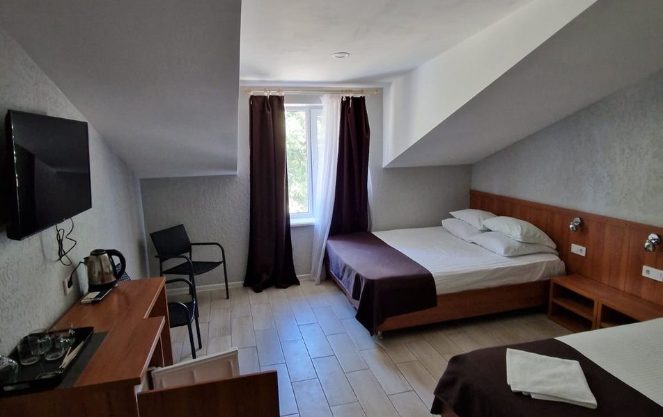 Для размещения гостей представлены номера, оснащенные всем необходимым для комфортного времяпрепровождения: удобные спальные места с белоснежным постельным бельем, телевизор для просмотра фильмов и передач, шкаф и собственная ванная комната.