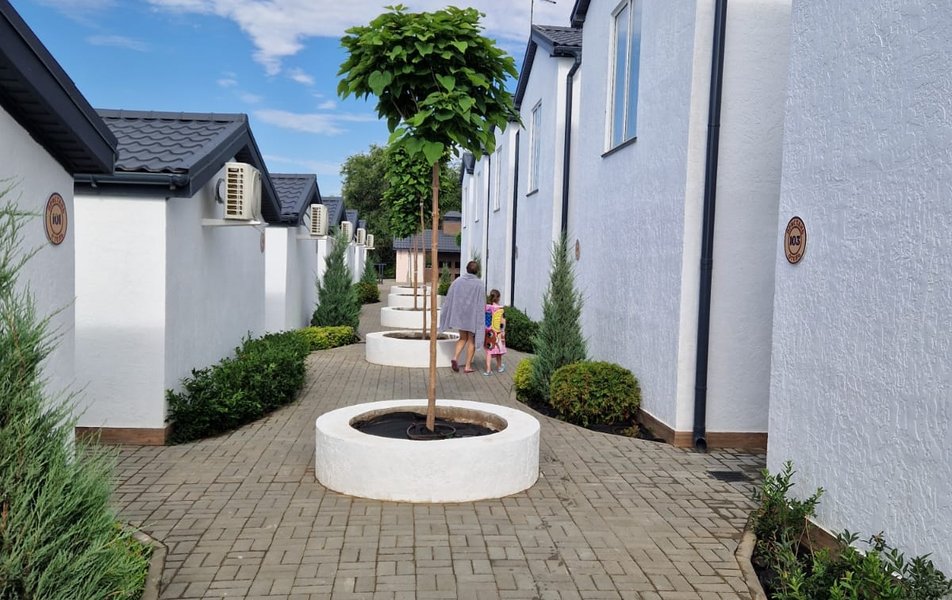 На территории работает кафе, где можно перекусить, подогреваемый бассейн, бассейн с гидромассажем, мангальная зона, терраса и беседки, парковка и игровая площадка.