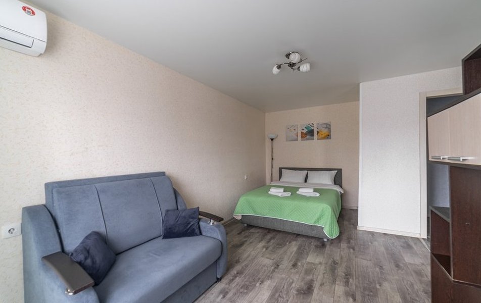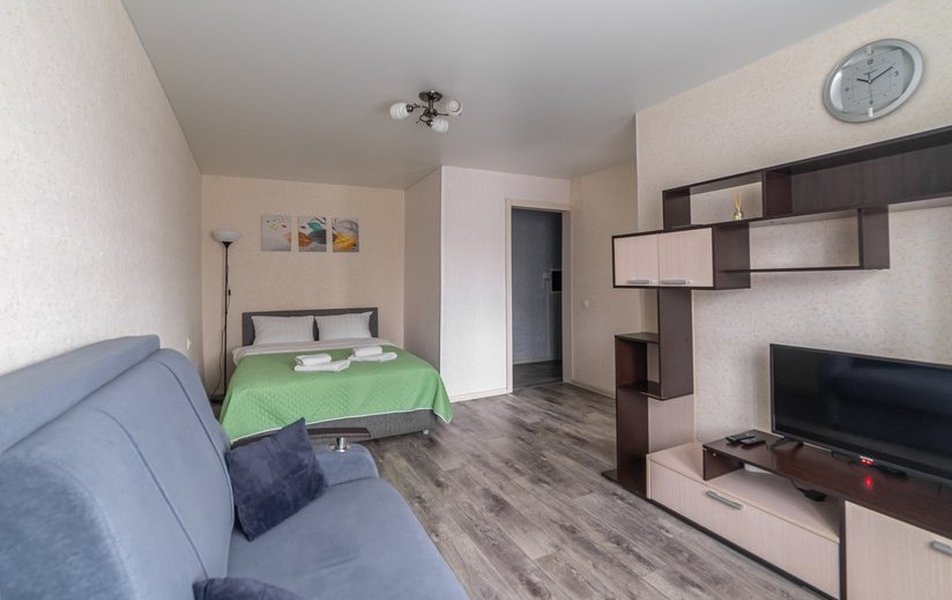 Сами апартаменты продуманы до мелочей для спокойного отдыха или работы. Просторная двуспальная кровать с качественным матрасом обеспечит здоровый сон, а раскладной диван позволит разместиться с комфортом. Кухня оснащена всем необходимым для приготовления еды: есть холодильник, газовая плита, микроволновая печь и электрический чайник. В ванной комнате гостей ждут стиральная машина, фен, утюг с сушилкой для одежды, а также шампунь, гель для душа и жидкое мыло. Для приятных завтраков подготовлен набор посуды и столовых приборов на троих. Телевизор и высокоскоростной Wi-Fi помогут скрасить вечер или оставаться на связи с работой.