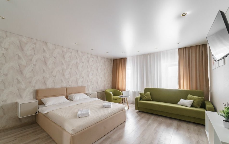 Апартаменты представляют собой полностью оборудованное пространство для временного или постоянного проживания. Внутри продумана удобная планировка, позволяющая комфортно разместиться как одному гостю, так и небольшой семье. В распоряжении гостей — уютная комната для отдыха и сна, функциональная кухня-зона и отдельный санузел.