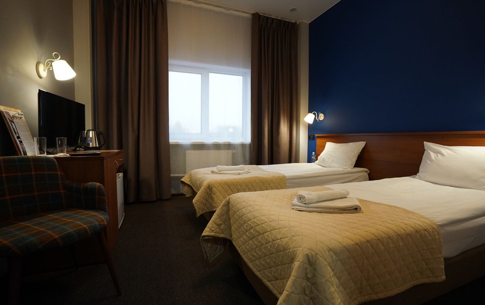 Поездом до ж/д вокзала ст. Белозерск, далее пешком 790 м до отеля.