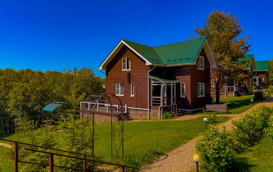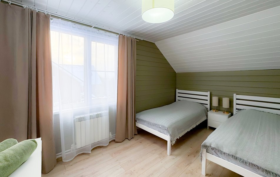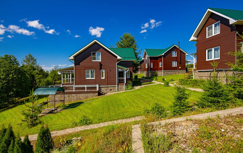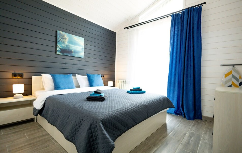 Для комфортного проживания предлагаются 2-этажные коттеджи, вместимостью до 10 человек. В каждом из них предусмотрены удобные спальные места, спутниковое телевидение, высокоскоростной интернет, стиральная машина, душевая кабина, фен и набор полотенец.