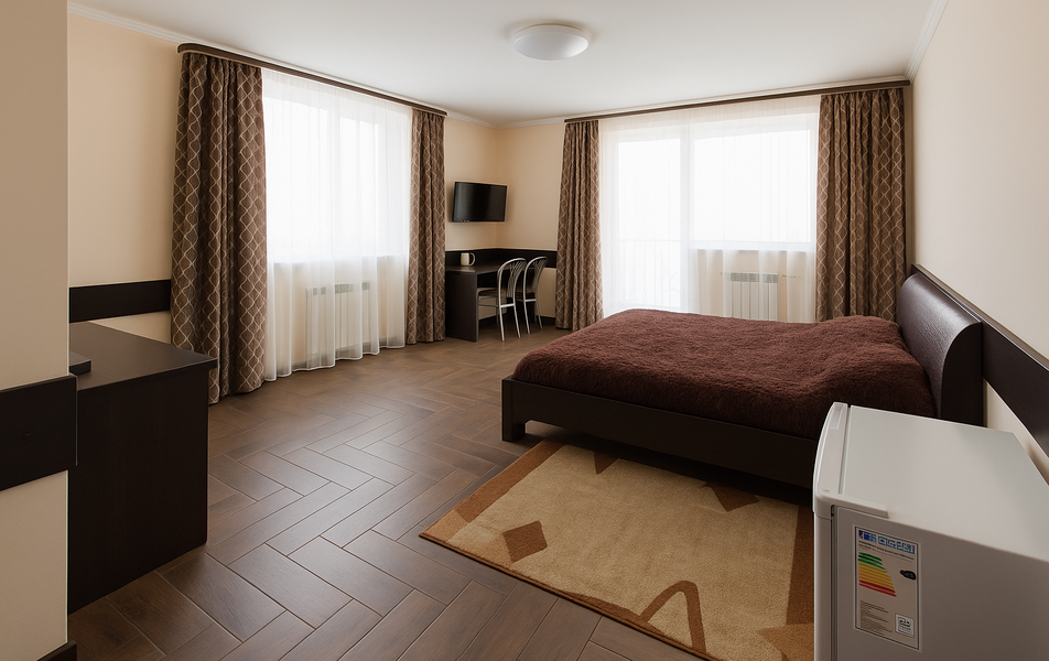 | Оборудование | индивидуальная система обогрева мини-холодильник набор посуды телевизор электрочайник |
