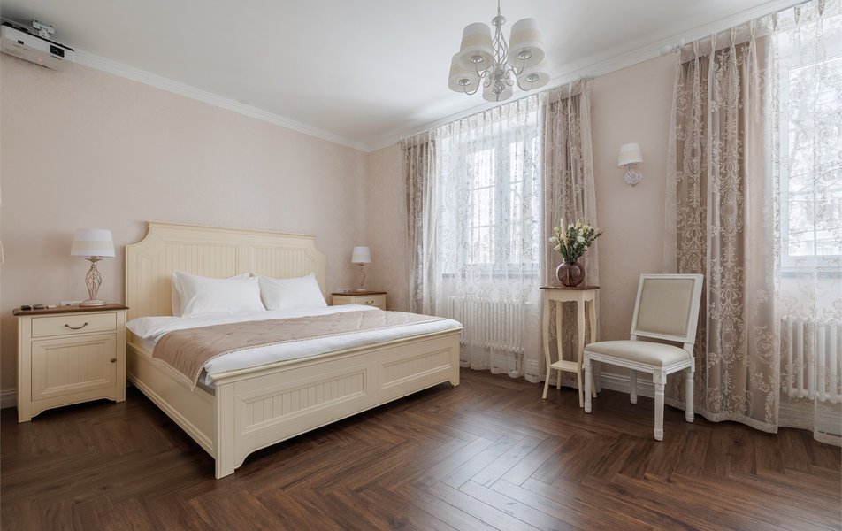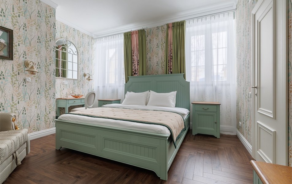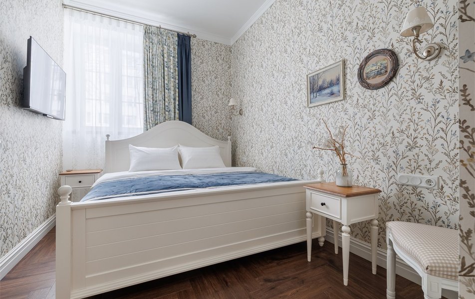 | Мебель | кровать двуспальная прикроватные столики стол стул |