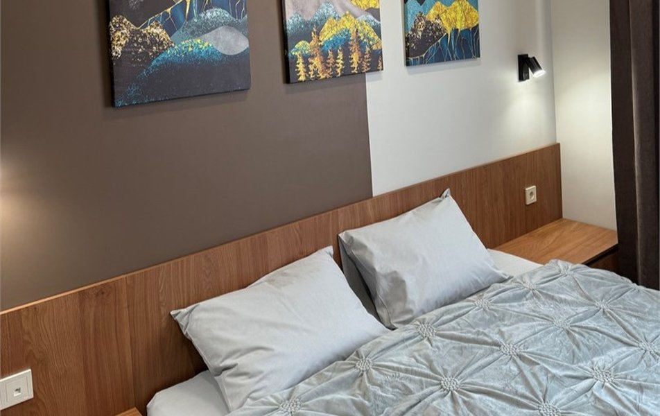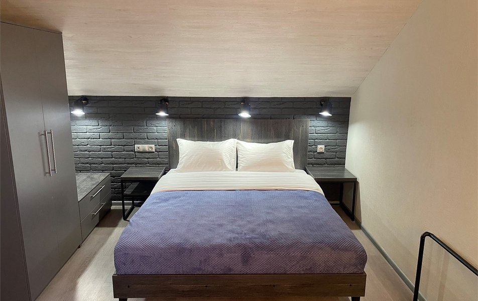 Гостей ожидают девять просторных однокомнатных номеров в трехэтажном здании на Красноармейской улице. Каждый номер представляет собой комфортные апартаменты с продуманными деталями и функциональностью: установлена мини-кухня с плитой, холодильником и набором посуды, в зоне отдыха - кровати с ортопедическими матрасами, Smart-телевизор. Для большего удобства имеется кондиционер и электронные замки. Современный санузел оснащен душевой кабиной, теплым полом, феном и предметами гигиены, что дополняет ощущение домашнего уюта.