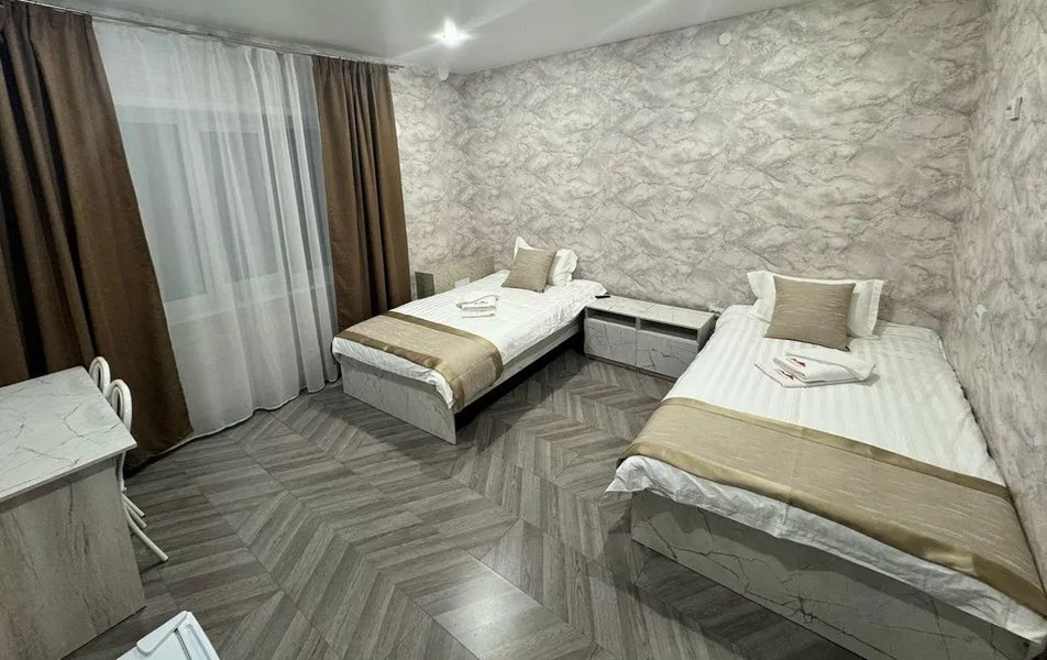 Двухэтажное здание гостиницы разместилось на улице Железнодорожников. Для проживания гостей предусмотрено 26 однокомнатных номеров, оформленных в классическом стиле. Внутри каждого номера – персональный санузел с душем, телевизор, холодильник.