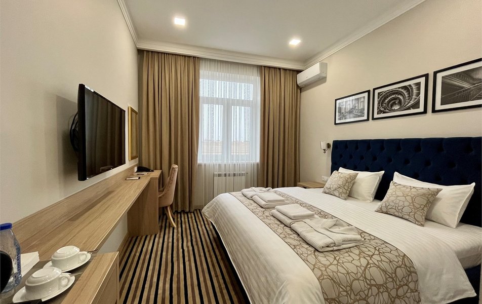 Внутри гостей ждут комфортабельные номера разных категорий, способные разместить как одного человека, так и пару. В каждом номере — всё для полноценного отдыха: современная техника, кондиционер, поддерживающий приятный микроклимат, и собственный санузел с феном, свежим набором полотенец и базовыми гигиеническими принадлежностями. Приятные мелочи вроде чая, кофе и бутилированной воды помогут расслабиться после дороги, а бесплатный высокоскоростной Wi-Fi работает и в номерах, и на всей территории. Также есть телевизор и качественная звукоизоляция, благодаря которой городской шум не помешает сну. Круглосуточная стойка регистрации готова помочь в любое время суток, а служба обслуживания номеров доставит еду или напитки прямо в комнату.