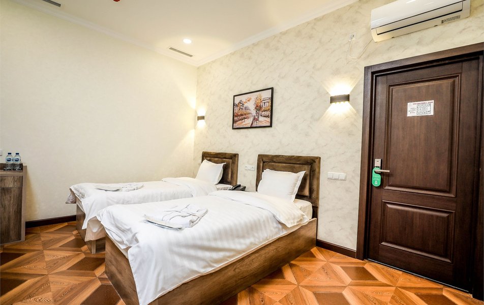 Поездом до ж/д вокзала г. Ташкент, далее на метро до станции «Гафура Гуляма», далее пройти пешком 1000 м до отеля.