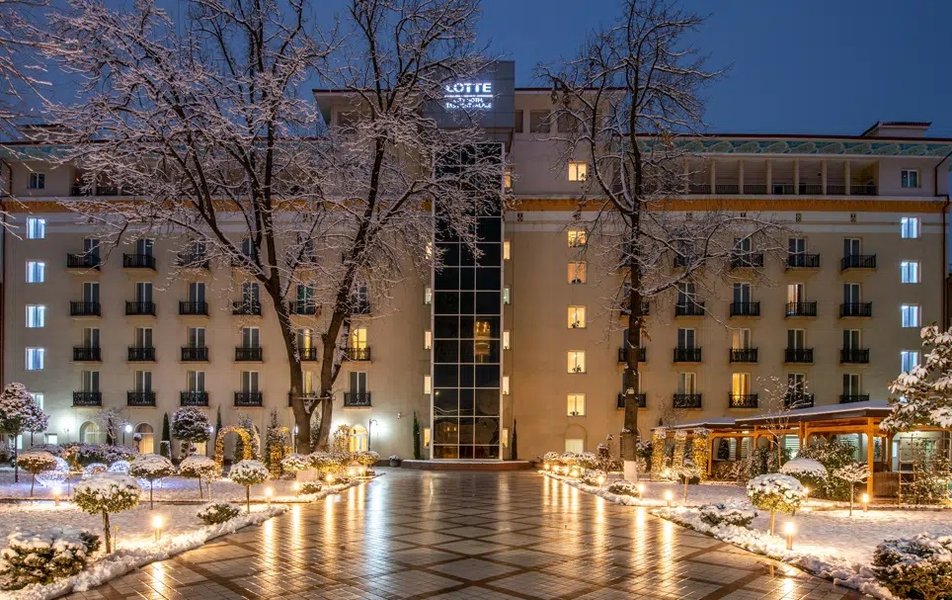 В самом сердце Ташкента, на оживленной улице Буюк Турон, возвышается здание с особой архитектурой, хранящее дыхание ушедшей эпохи. Отель «Lotte City Hotel Tashkent Palace» — это удивительный диалог между величественным прошлым и безупречным настоящим. Построенный в 1958 году, этот отель с элегантным фасадом стал свидетелем истории города, и сегодня, после бережной реставрации, он встречает гостей, предлагая эталонный комфорт корейского гостиничного гиганта Lotte.