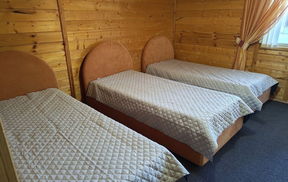Омера для проживания гостей располагаются в 2-этажном коттедже. Каждый номер оснащен ванной комнатой с душем и кухней с посудой, раковиной, холодильником и микроволновой печью. Во всех номерах есть телевизор, а из окон открывается вид на живописное лесное озеро. На территории комплекса работает кафе. Дополнительно отдыхающим предлагается приятно провести время в русской бане на дровах. На свежем воздухе установлены тренажеры.