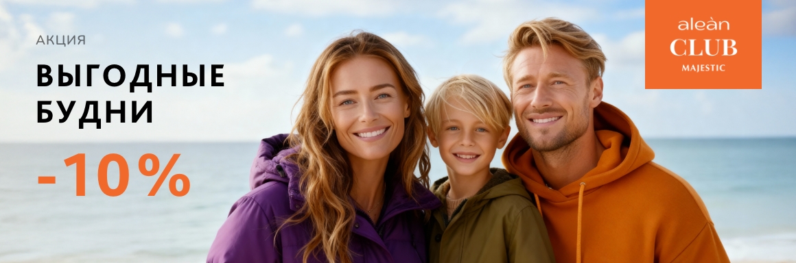 Чем больше юных гостей, тем ярче атмосфера отеля Alean Club Majestic!! Именно поэтому дети до 12 лет размещаются на дополнительных местах совершенно бесплатно! Пусть ваш семейный отдых всегда будет самой прекрасной идей! Приглашаем вас оценить первоклассные сервисы отеля Alean Club Majestic, где каждый гость получит незабываемые впечатления!