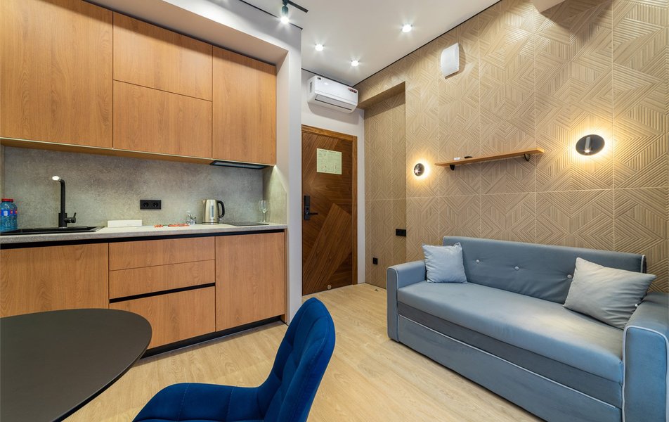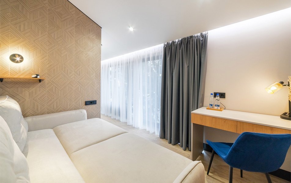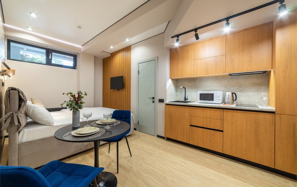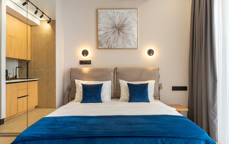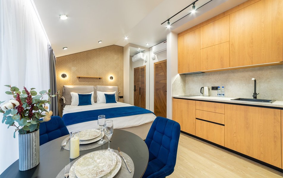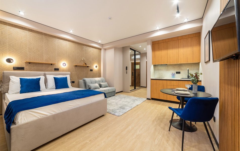 Трехэтажный апарт-отель предлагает 38 роскошных номеров, предназначенных для обеспечения максимального комфорта гостей. В номерах есть вся необходимая техника и мебель. В каждом номере предусмотрен собственный санузел с косметическими принадлежностями и полотенцами. В большинстве номеров для самостоятельного приготовления еды есть оборудованная кухонная зона. Среди услуг - интернет Wi-Fi в номерах, общественных гостевых зонах Отеля