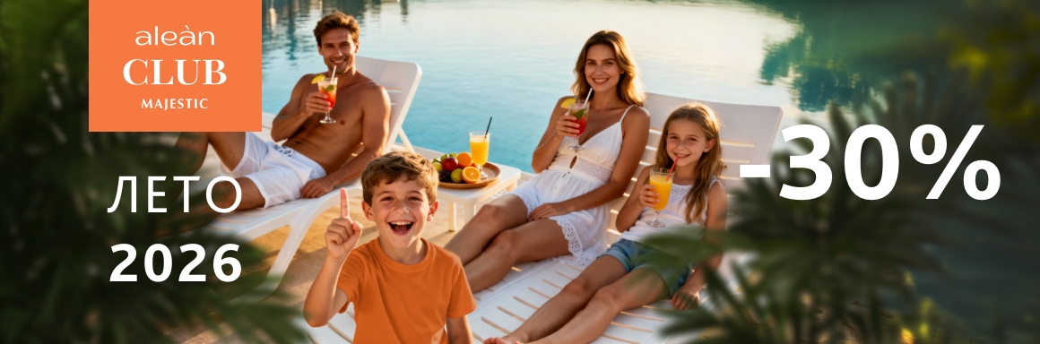 Чем больше юных гостей, тем ярче атмосфера отеля Alean Club Majestic!! Именно поэтому дети до 12 лет размещаются на дополнительных местах совершенно бесплатно! Пусть ваш семейный отдых всегда будет самой прекрасной идей! Приглашаем вас оценить первоклассные сервисы отеля Alean Club Majestic, где каждый гость получит незабываемые впечатления!