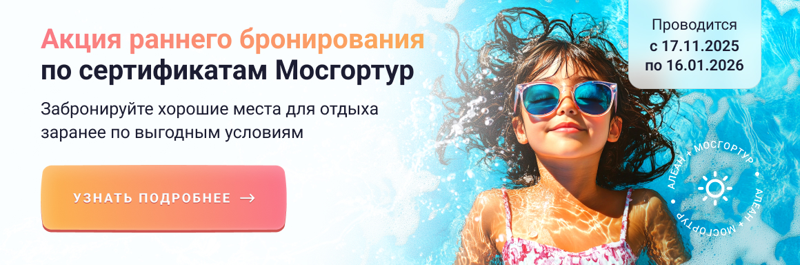 В путевку обязательно должно входить проживание в любом объекте размещения, представленном на нашем сайте, или отдых в детском лагере, или организованный экскурсионный тур, в состав которого входит проживание или круиз.