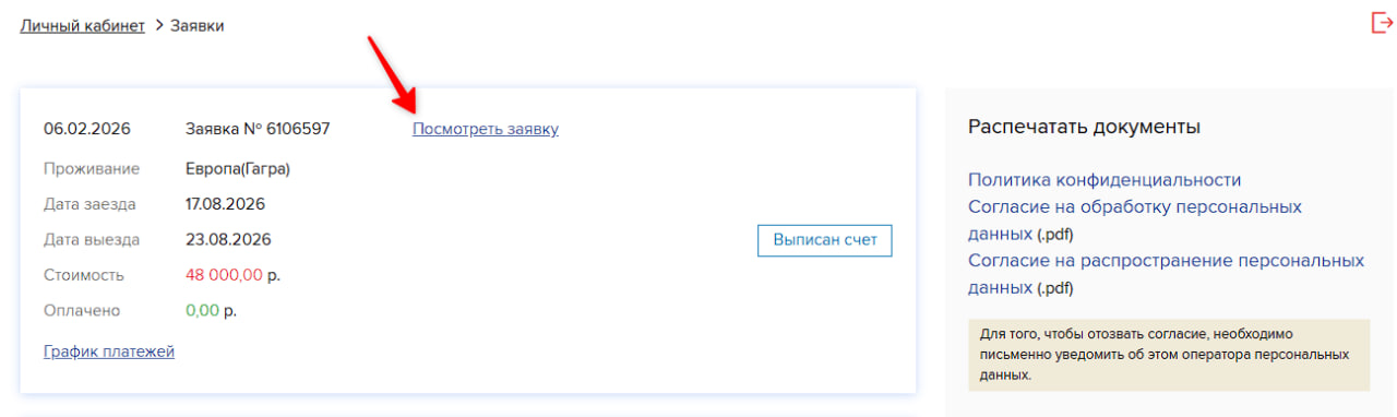 Войдите в заявку (нажав «Посмотреть заявку»).