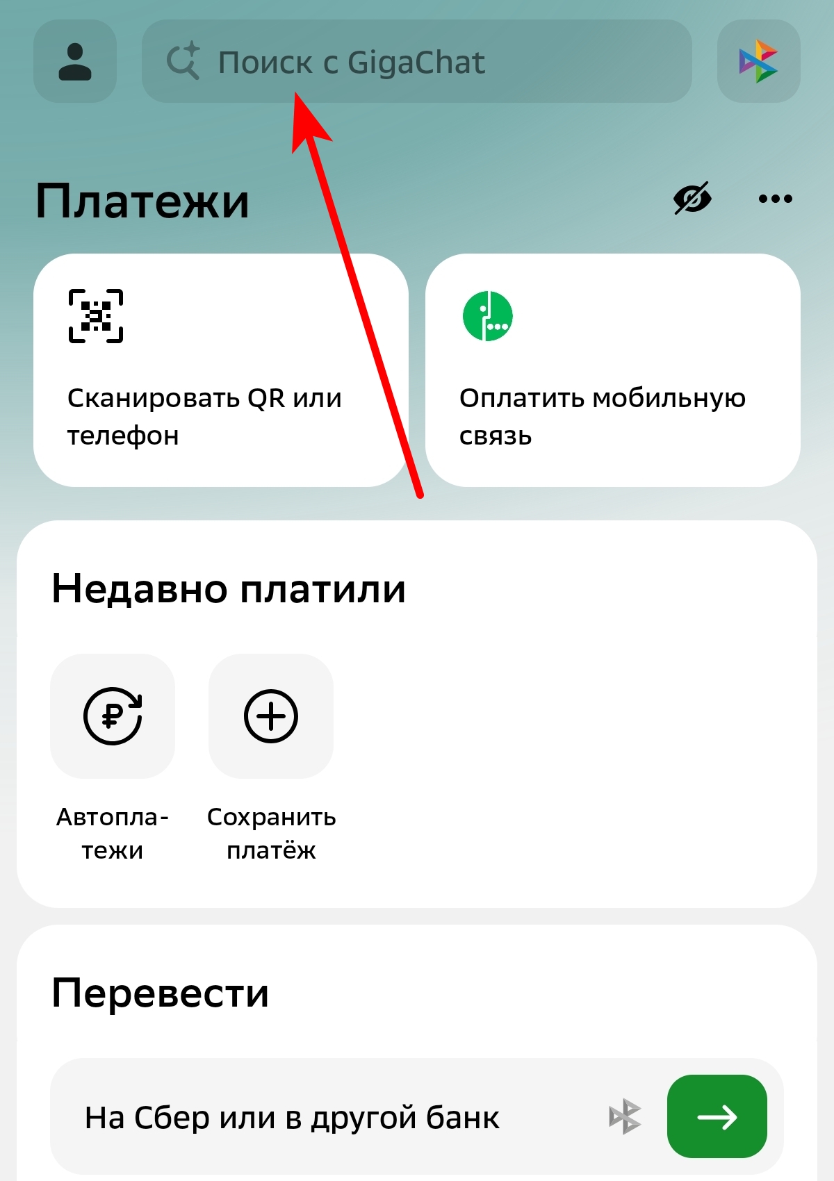 1. Выбрать в меню пункт "Поиск с GigaChat" в верхней части экрана