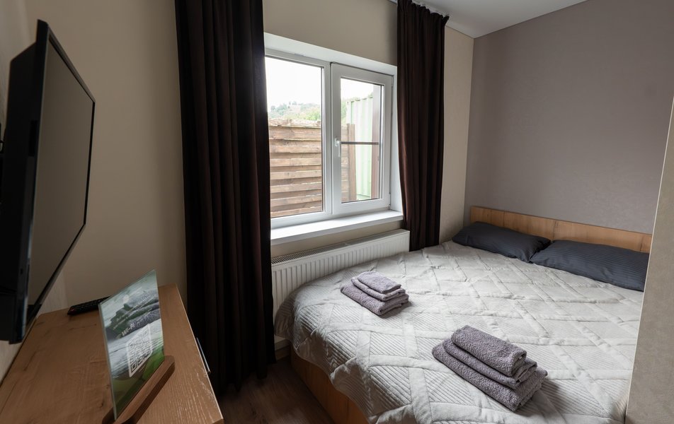 Для проживания предлагаются номера в отдельно стоящих коттеджах, летние домики, панорамные дома и глемпинги. В комнатах установлена необходимая мебель, есть телевизор, холодильник, электрический чайник. Санузел может быть индивидуальным, общим на этаже для коттеджей, либо на территории для летних домиков. В домах, шале и некоторых номерах в коттеджах установлены кухонные зоны.